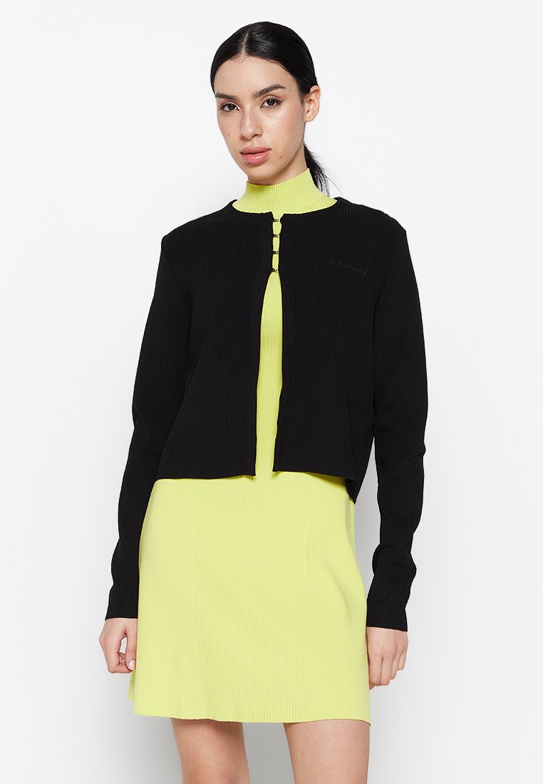Stay effortlessly chic this Spring/Summer with the Karl Lagerfeld Black Cardigan for Women. This versatile piece seamlessly blends casual and elegant style, perfect for any occasion. Made with high-quality materials, this cardigan is a must-have addition to your wardrobe. Elevate your look with this timeless staple in classic black.
