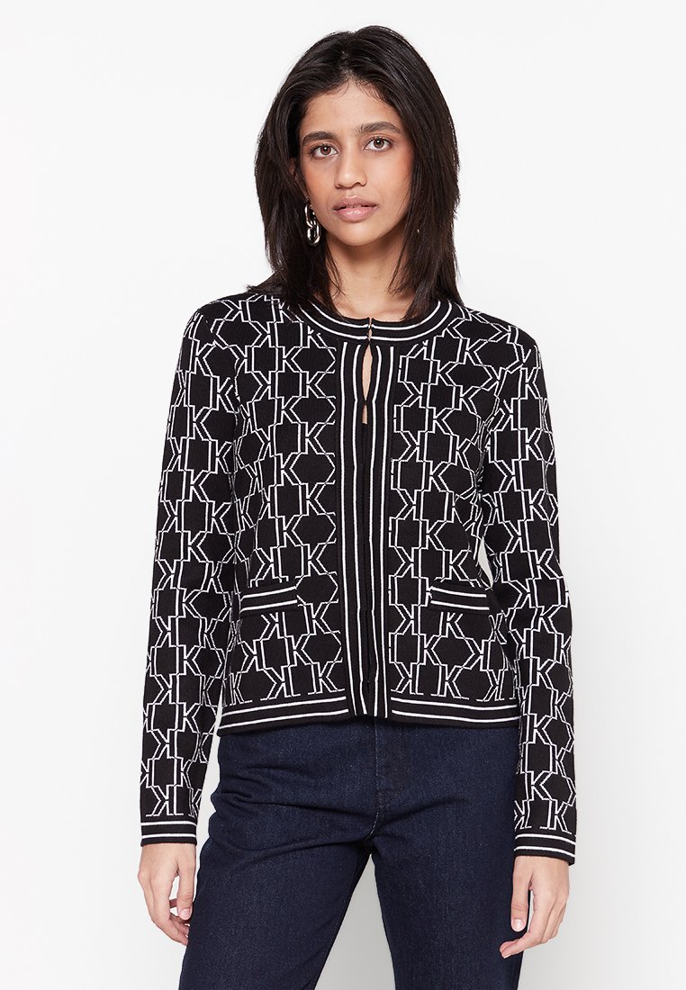 Stay effortlessly chic this Spring/Summer with the Karl Lagerfeld Black Cardigan for Women. This versatile piece seamlessly blends casual and elegant style, perfect for any occasion. Made with high-quality materials, this cardigan is a must-have addition to your wardrobe. Elevate your look with this timeless staple in classic black.