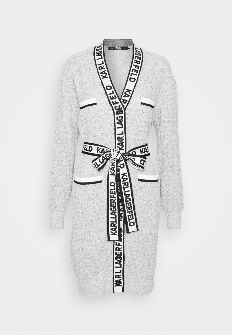 Stay chic and sophisticated in this Karl Lagerfeld Grey Cardigan for Women. Perfect for the Spring/Summer season, the casual yet elegant design adds a touch of luxury to any outfit. Made from high-quality materials, this versatile piece is a must-have for any fashion-forward wardrobe. Elevate your style with this timeless grey cardigan from Karl Lagerfeld.