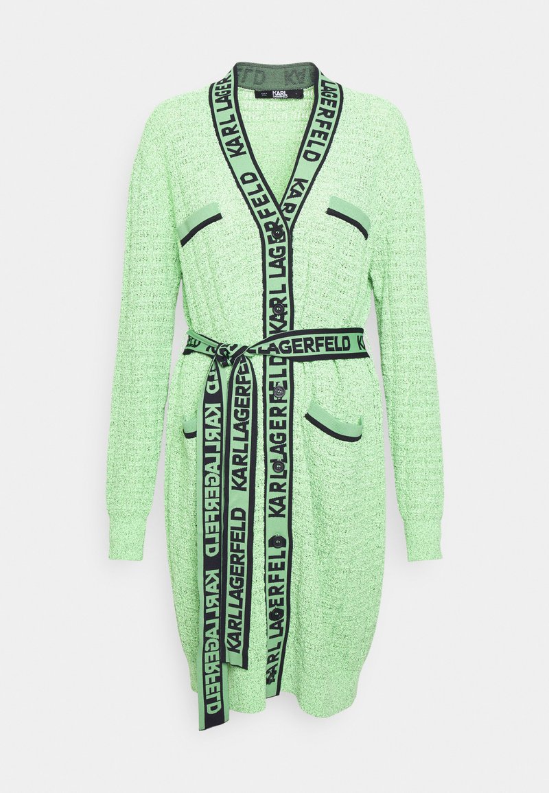 Stay chic and sophisticated this Spring/Summer with Karl Lagerfeld's green cardigan for women. This versatile piece effortlessly combines casual and elegant style. Perfect for layering over your favorite outfit, adding a pop of color to your look. Elevate your wardrobe with this timeless piece from Karl Lagerfeld.