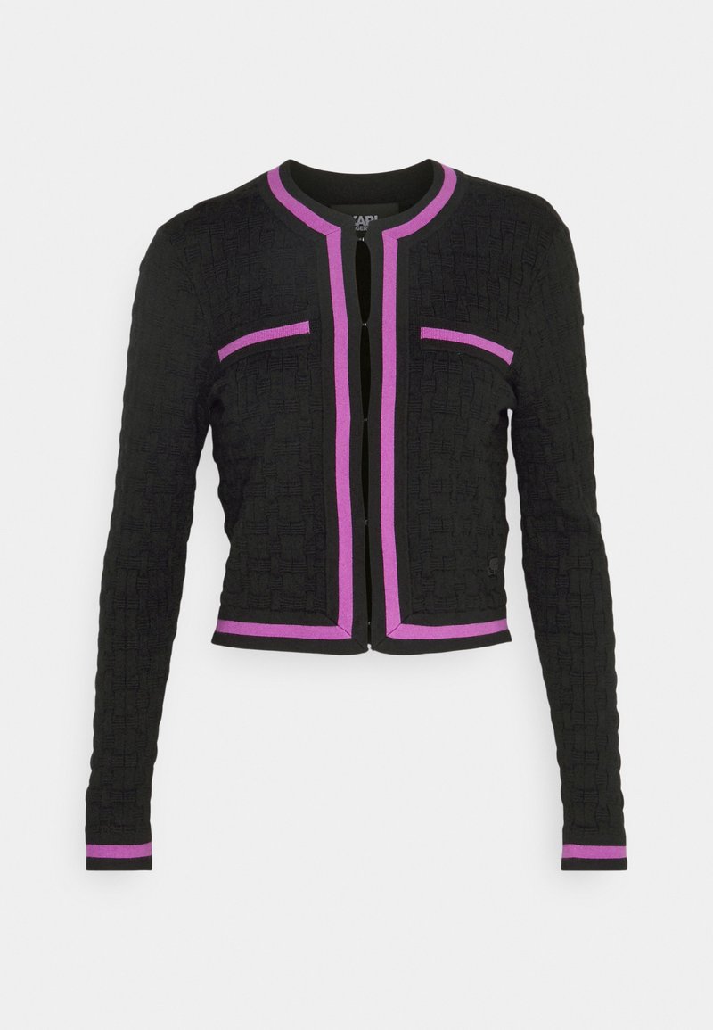 Stay effortlessly chic this Spring/Summer with the Karl Lagerfeld Black Cardigan for Women. This versatile piece seamlessly blends casual and elegant style, perfect for any occasion. Made with high-quality materials, this cardigan is a must-have addition to your wardrobe. Elevate your look with this timeless staple in classic black.