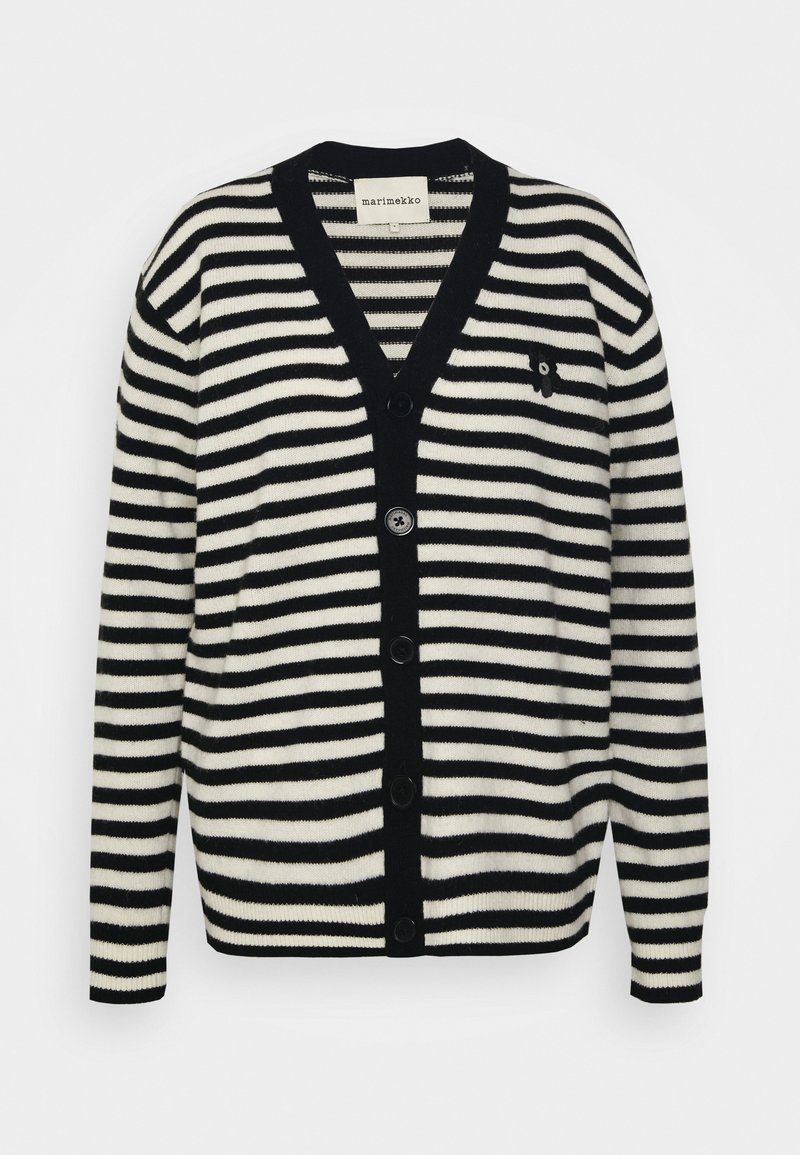 Stay chic and comfortable in this Marimekko cardigan. Perfect for the warmer months, this versatile piece effortlessly combines casual and elegant style. The classic black color makes it easy to pair with any outfit. A must-have addition to any woman's wardrobe this Spring/Summer.