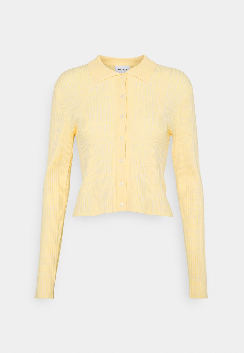 Stay effortlessly chic this Spring/Summer season with this Casual/Elegant yellow cardigan from Monki. Perfect for any occasion, this versatile piece adds a pop of color to your outfit. Made from high-quality materials, it is both comfortable and stylish. Elevate your wardrobe with this must-have piece from Monki.