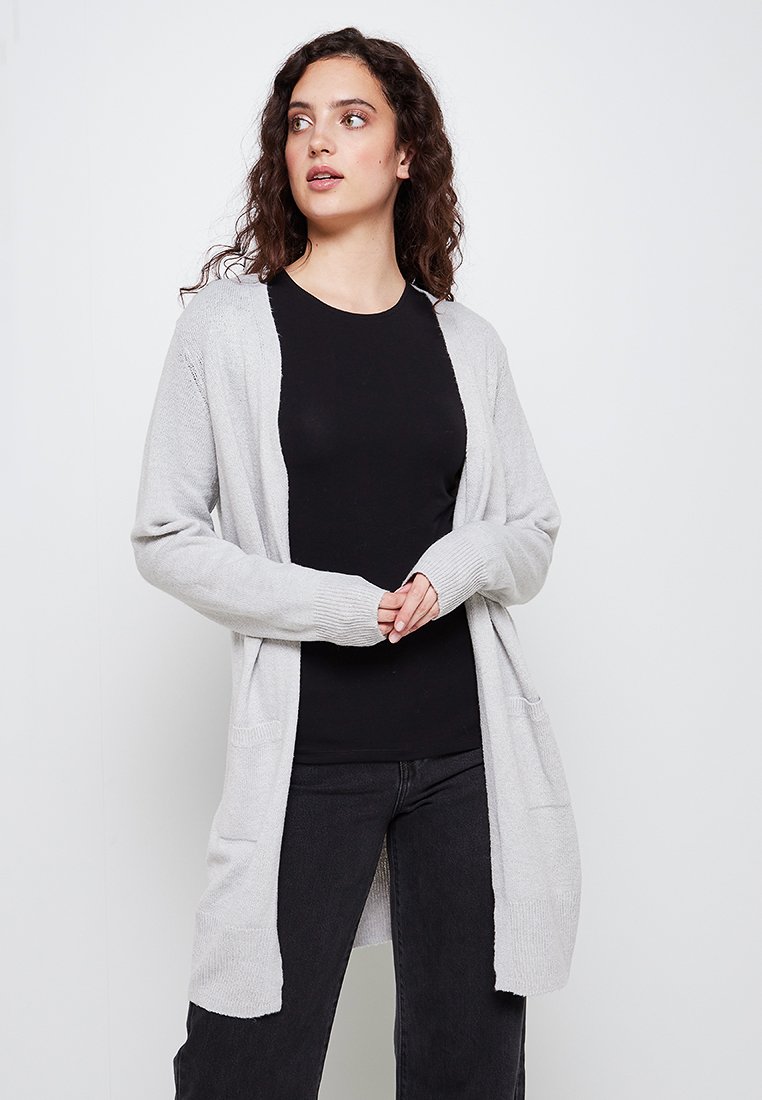 Stay effortlessly chic this Spring/Summer season with the Vero Moda Grey Cardigan. This versatile piece seamlessly blends casual and elegant style, perfect for any occasion. Featuring a soft grey hue, this cardigan is a must-have addition to any woman's wardrobe. Elevate your look with this timeless layering piece from Vero Moda.
