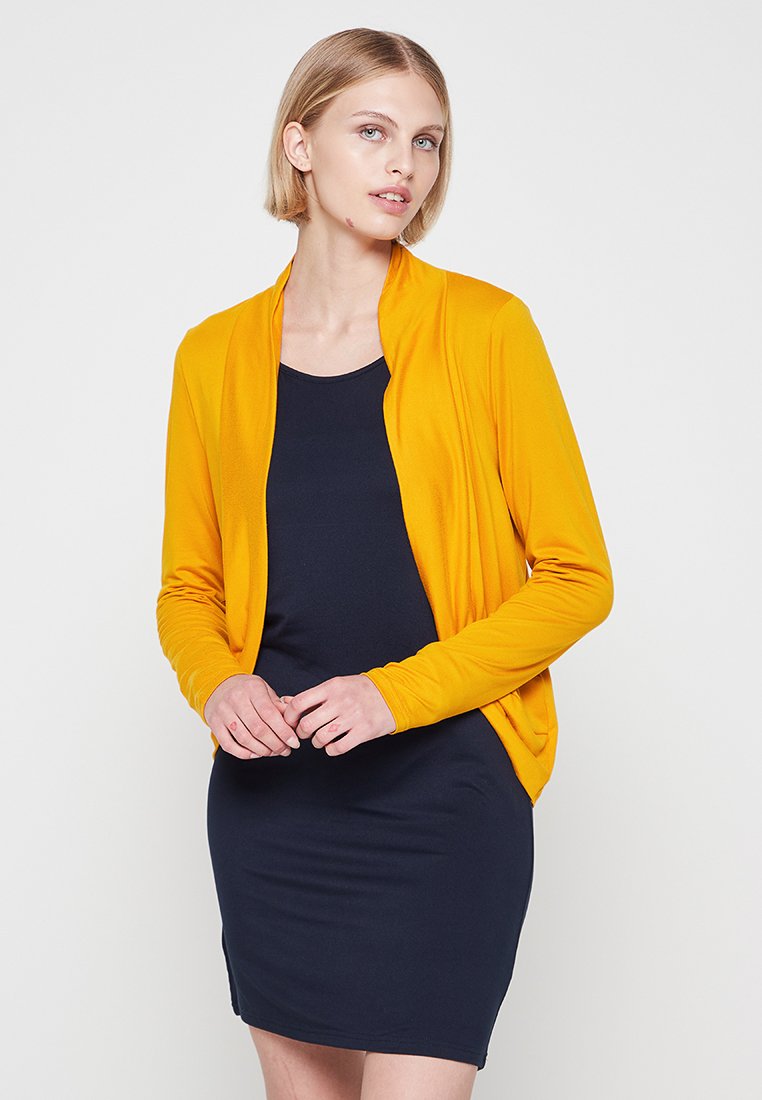 Stay chic and comfortable in this Casual/Elegant Yellow cardigan from Vero Moda. Perfect for the Spring/Summer season, this versatile piece can be dressed up or down for any occasion. With its soft fabric and flattering fit, this cardigan is a must-have addition to any woman's wardrobe. Embrace sunny days in style with this effortlessly chic Vero Moda cardigan.