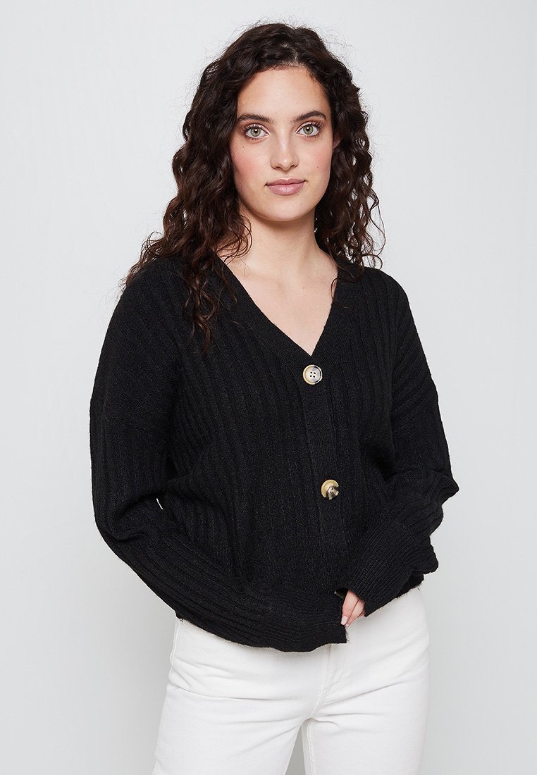 Stay stylish and comfortable in this Casual/Elegant black cardigan from Noisy May. Perfect for the Spring/Summer season, this versatile piece can be dressed up or down for any occasion. With its sleek design and lightweight fabric, this cardigan is a must-have addition to any woman's wardrobe. Whether you're heading to work or out for the weekend, this Noisy May cardigan is the perfect choice.