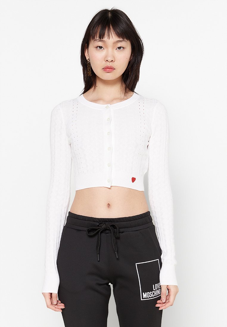 Stay stylish and comfortable in this Casual/Elegant white cardigan from Love Moschino. Perfect for the Spring/Summer season, this versatile piece can be dressed up or down for any occasion. Made with quality materials and a flattering fit, it's a must-have addition to any woman's wardrobe. Elevate your look with this chic and timeless piece from Love Moschino.