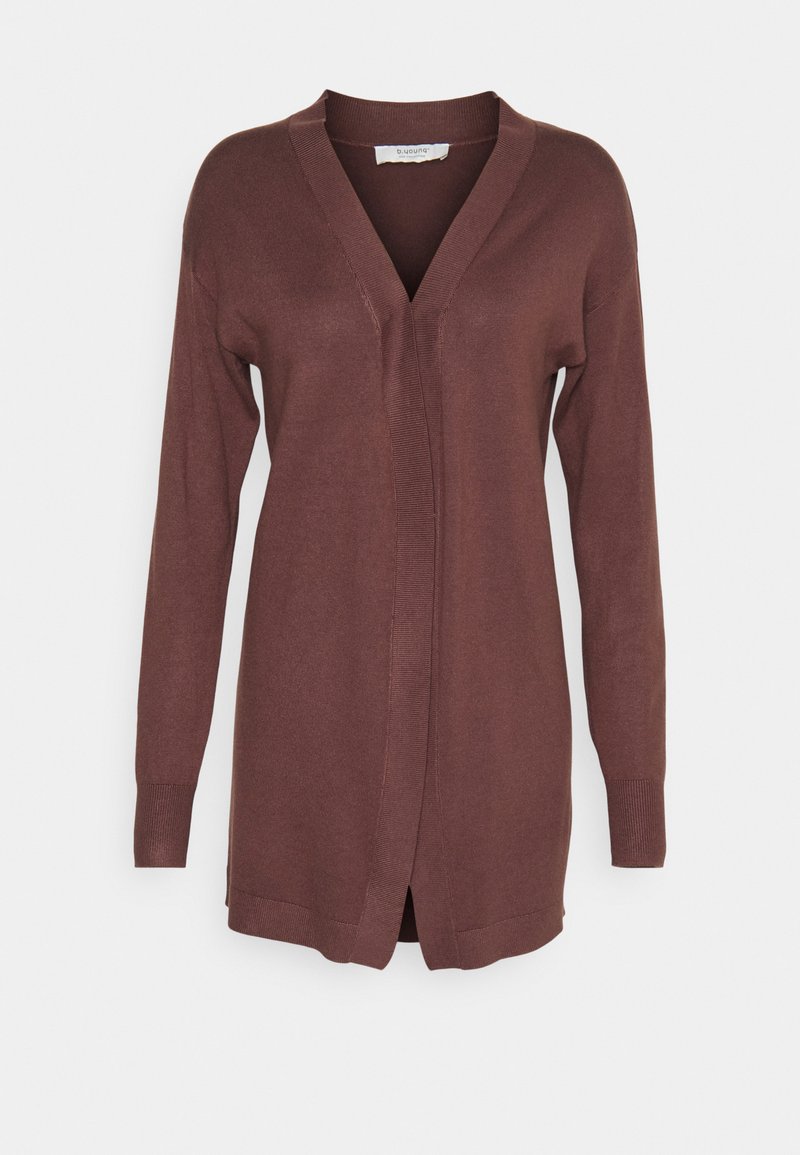 Stay effortlessly chic in this b.Young cardigan, perfect for the Spring/Summer season. The casual yet elegant style in a rich brown color is versatile for day or evening wear. Layer it over a camisole and jeans for a laid-back look, or pair it with a dress for a more polished ensemble. Elevate your wardrobe with this must-have piece.