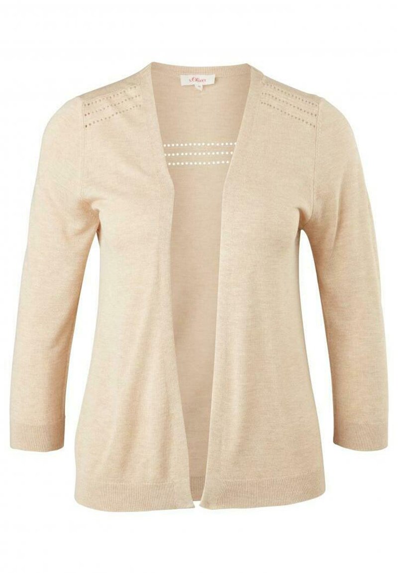 Stay effortlessly chic in this s.Oliver Beige Cardigan for Women, perfect for the Spring/Summer season. Combining casual comfort with elegant style, this versatile piece is a must-have for your wardrobe. Whether you're off to brunch or a night out, this cardigan can easily be dressed up or down. Add a touch of sophistication to any outfit with this timeless beige staple.