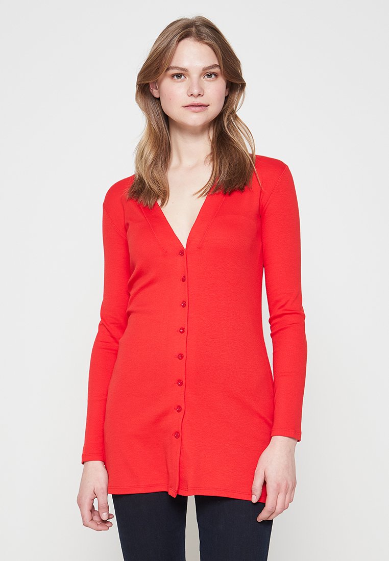 Add a pop of color to your Spring/Summer wardrobe with this casual yet elegant Marc Cain cardigan in a vibrant shade of red. Perfect for any occasion, this versatile piece can be dressed up or down effortlessly. Stay stylish and comfortable in this chic and timeless addition to your closet. Stand out in the crowd with this must-have fashion staple from Marc Cain.