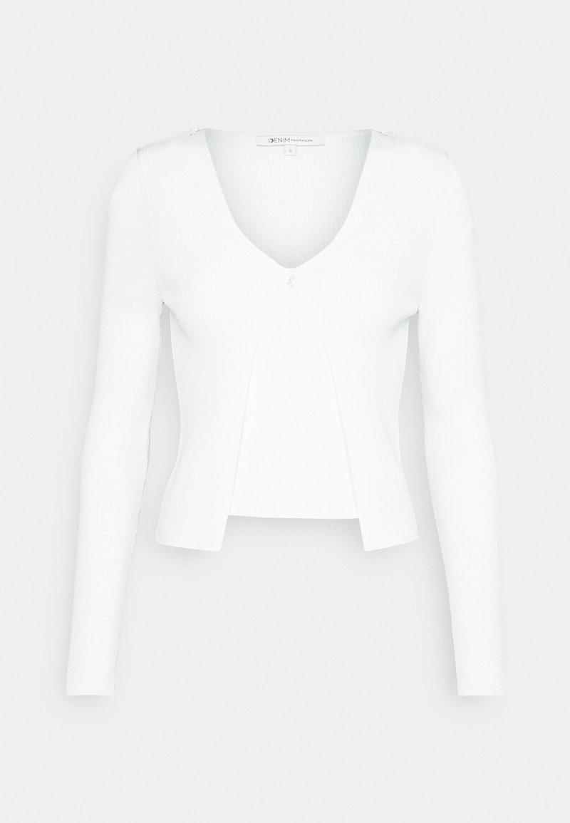 Stay effortlessly chic in this Casual/Elegant White cardigan from Tom Tailor Denim. Perfect for the Spring/Summer season, this versatile piece is ideal for any occasion. Dress it up with heels for a night out or pair it with sandals for a relaxed daytime look. Add a touch of sophistication to your wardrobe with this stylish essential.