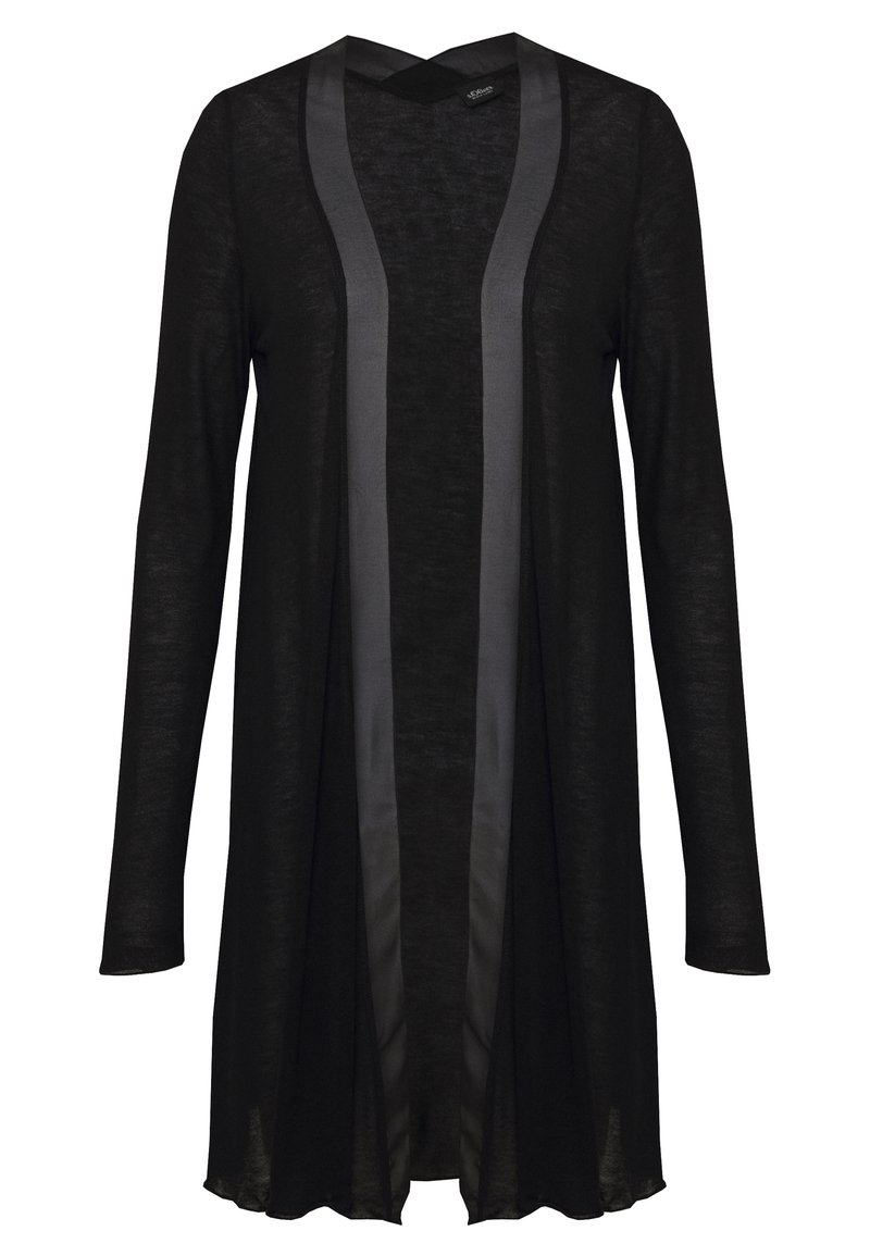 Stay stylish and comfortable in this Casual/Elegant black cardigan from s.Oliver BLACK LABEL. Perfect for the Spring/Summer season, this versatile piece can be dressed up or down for any occasion. With its flattering fit and timeless color, it's a wardrobe essential for any woman of style. Elevate your look with this must-have layering piece.