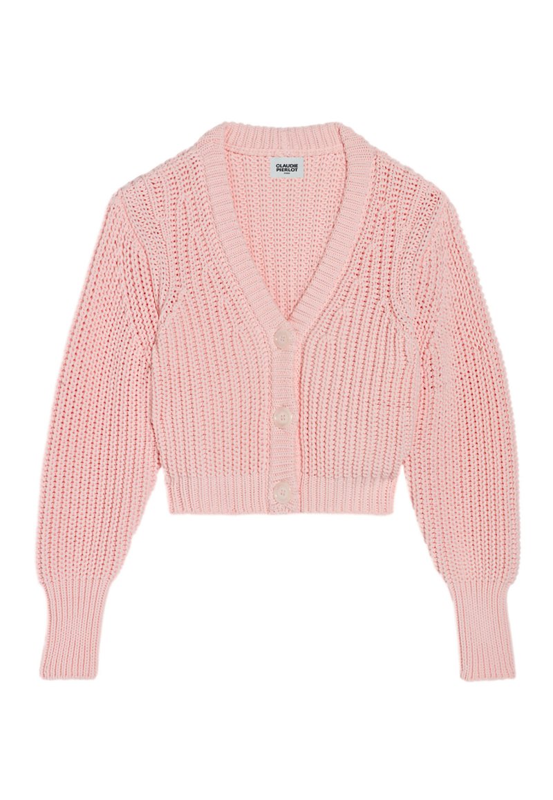 Stay effortlessly chic in this CLAUDIE PIERLOT Pink Cardigan. Perfect for the Spring/Summer season, this casual yet elegant piece is a versatile addition to any wardrobe. The soft pink hue adds a touch of femininity, while the lightweight fabric ensures comfort on warmer days. Elevate your look with this stylish cardigan.