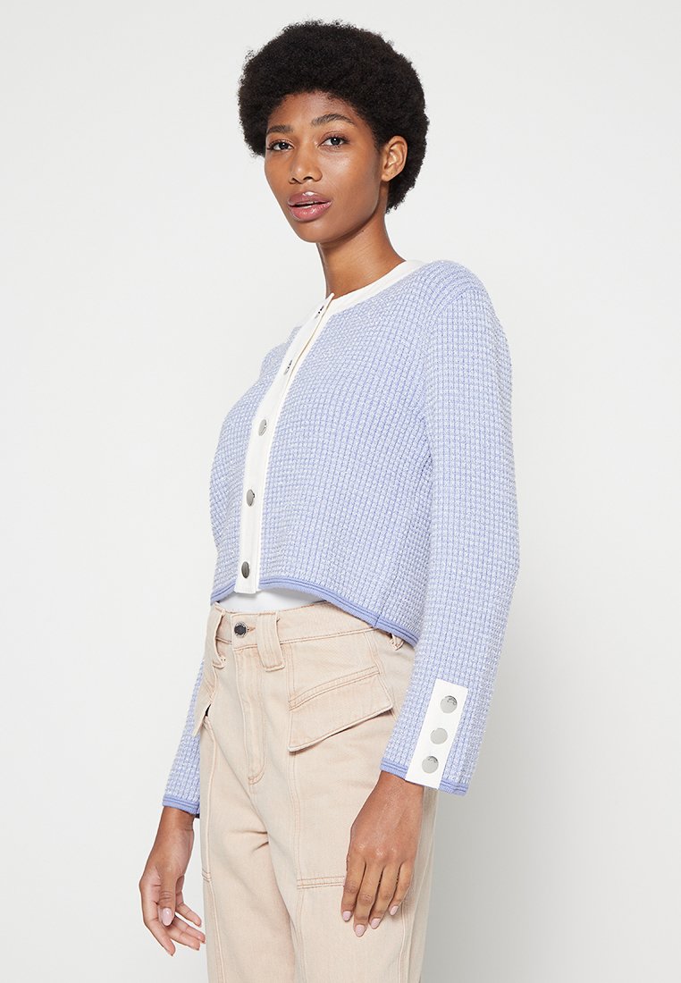 Stay effortlessly chic this Spring/Summer season with the Casual/Elegant Blue Cardigan from CLAUDIE PIERLOT. This versatile piece is perfect for adding a touch of sophistication to any outfit. Crafted with quality materials, it offers both style and comfort. Upgrade your wardrobe with this must-have item for a timeless look.