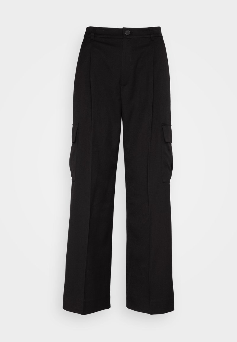 Elevate your casual style with these versatile black cargo pants from Monki. Perfect for the warmer seasons, these pants are both comfortable and trendy, making them a must-have for any wardrobe. Pair them with a simple tee or dress them up with a blouse for a chic and effortless look. Upgrade your spring/summer wardrobe with these stylish cargo pants.