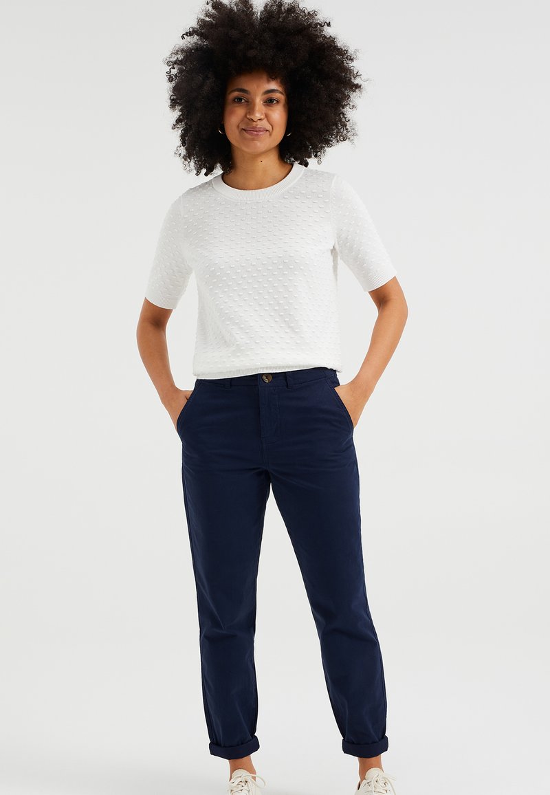 Stay stylish and comfortable in these blue chino pants from WE Fashion. Perfect for the Spring/Summer season, these casual yet elegant bottoms are versatile for any occasion. Embrace a relaxed chic look with a flattering fit that can be dressed up or down. Elevate your wardrobe with these timeless classics.