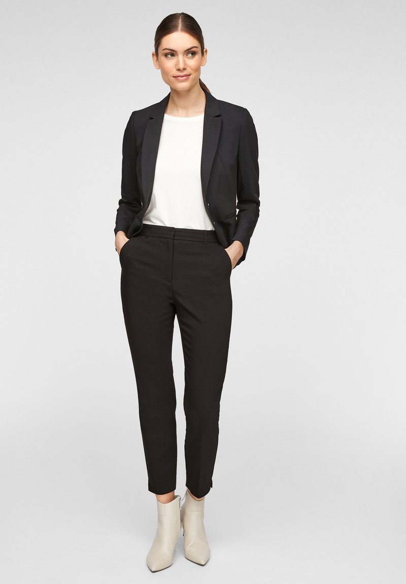 Elevate your Spring/Summer wardrobe with the s.Oliver BLACK LABEL Casual/Elegant Women's Chino in sleek Black. Perfect for versatile styling, this classic piece effortlessly transitions from day to night. Embrace timeless sophistication with a touch of modernity, making it a must-have for any contemporary woman's closet. Upgrade your look with this essential wardrobe staple.