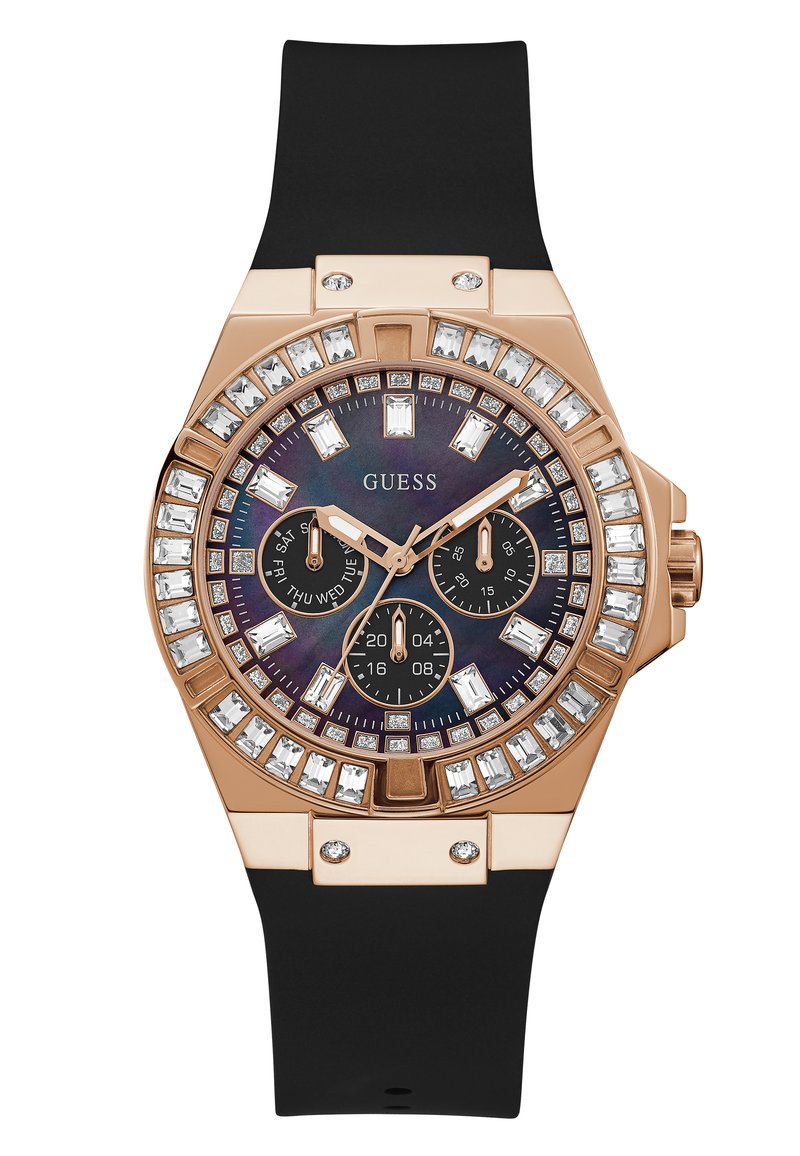 Stay effortlessly chic this Spring/Summer with the Guess casual/elegant Women's watch in sleek black. Perfect for any occasion, this stylish timepiece adds a touch of sophistication to any outfit. The chronograph feature adds functionality, while the black color complements any wardrobe. Elevate your look with this must-have accessory from Guess.