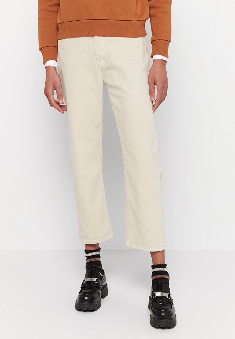 Stay cozy and chic with the Mother Casual Beige Cigarette Jeans for women. Perfect for the Autumn/Winter season, these stylish pants combine comfort and style effortlessly. The beige color adds a touch of warmth to your wardrobe, making them a versatile staple for any outfit. Elevate your casual look with these must-have jeans from Mother.