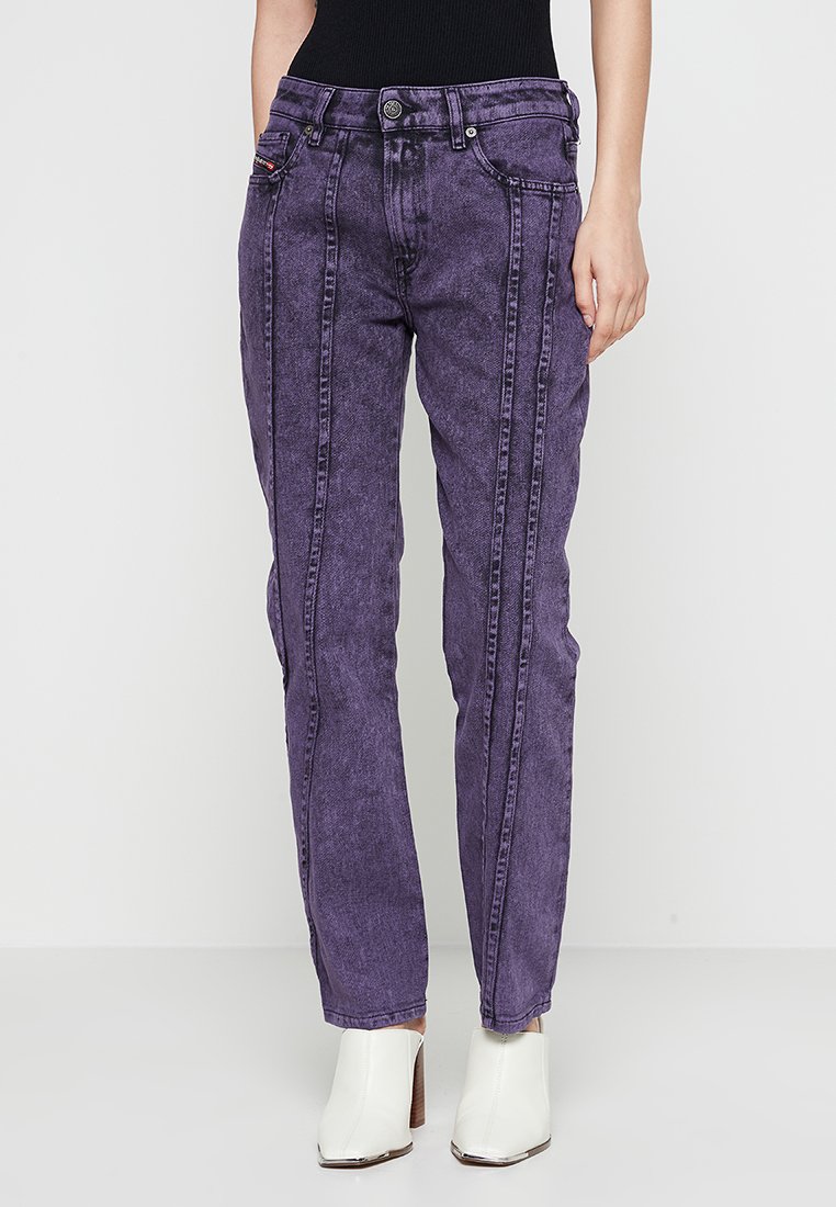 Stay comfy and stylish during the cooler months with these Casual Women's Pants from Diesel. The rich Violet color adds a pop of color to your wardrobe. Perfect for pairing with sweaters and boots for a trendy Autumn/Winter look. Upgrade your denim collection with these flattering cigarette jeans.