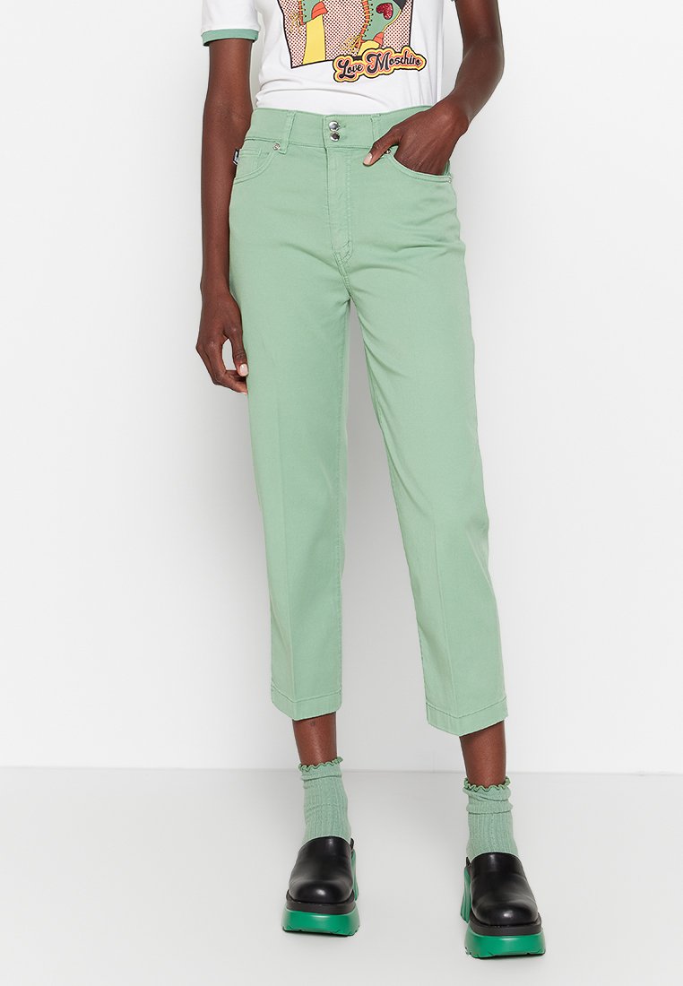 Stay stylish and comfortable this Autumn/Winter season with Love Moschino's Casual Green Pants for Women. These sleek and versatile jeans a sigaretta make the perfect addition to your wardrobe, effortlessly transitioning from day to night. The deep green color adds a touch of sophistication to any outfit, making these pants a must-have piece for the colder months. Elevate your look with these chic and trendy Love Moschino pants.