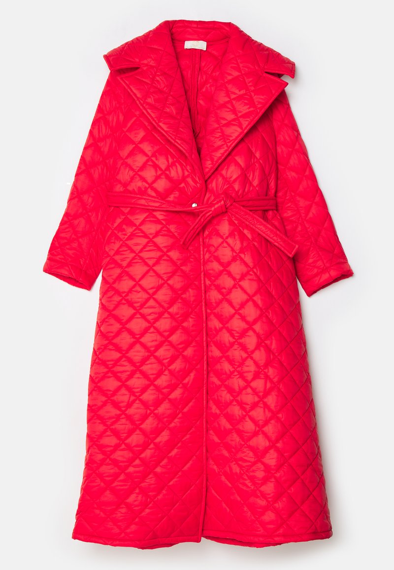 Stay warm and stylish in the Sara Battaglia Classic Coat for Women. This gorgeous red coat seamlessly blends casual and elegant vibes, making it perfect for the Autumn/Winter season. With its timeless design and vibrant color, this coat is a must-have for any fashion-forward woman's wardrobe. Upgrade your outerwear game with this chic piece from Sara Battaglia.
