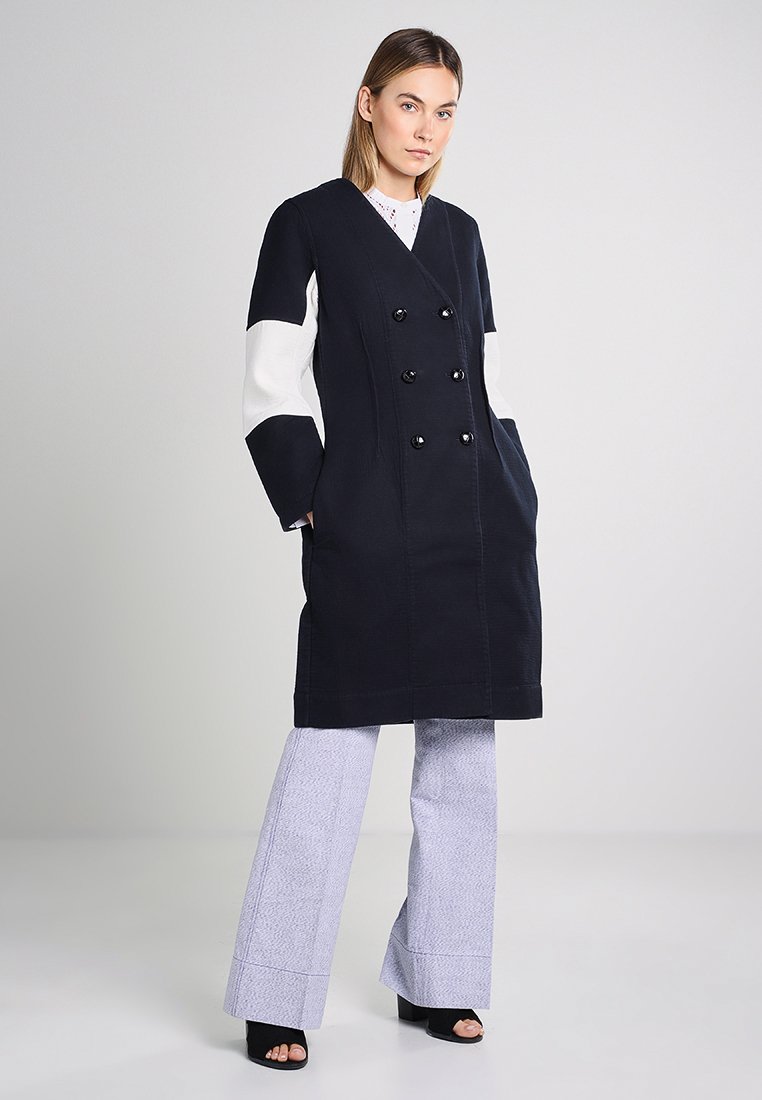 Stay stylish and chic in the cooler months with the Casual/Elegant coat by By Malene Birger. This classic coat in a stunning blue hue is perfect for the Autumn/Winter season. Whether you're running errands or heading to a fancy dinner, this versatile piece will keep you warm and fashionable. Add the cappotto classico to your wardrobe for a timeless and polished look.