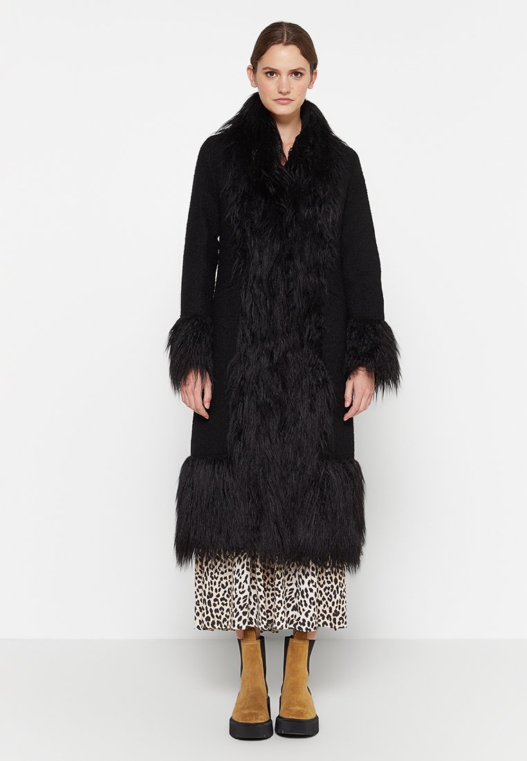Stay stylish and sophisticated in the Maje Classic Coat for Women. This versatile piece in timeless black is perfect for the Autumn/Winter season. The coat effortlessly combines casual and elegant elements for a chic look. Stay warm and fashionable with this must-have wardrobe staple.