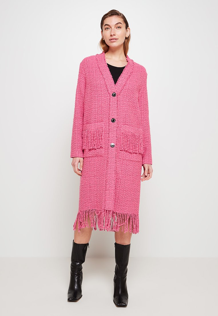 Stay cozy and chic in this Pinko Classic Coat for Women. The Casual/Elegant style makes it perfect for any occasion, while the Multi color adds a pop of vibrancy to your Autumn/Winter wardrobe. Whether you're running errands or heading out for a night on the town, this coat will keep you looking stylish and feeling warm. Dress up any outfit with this timeless piece from Pinko.