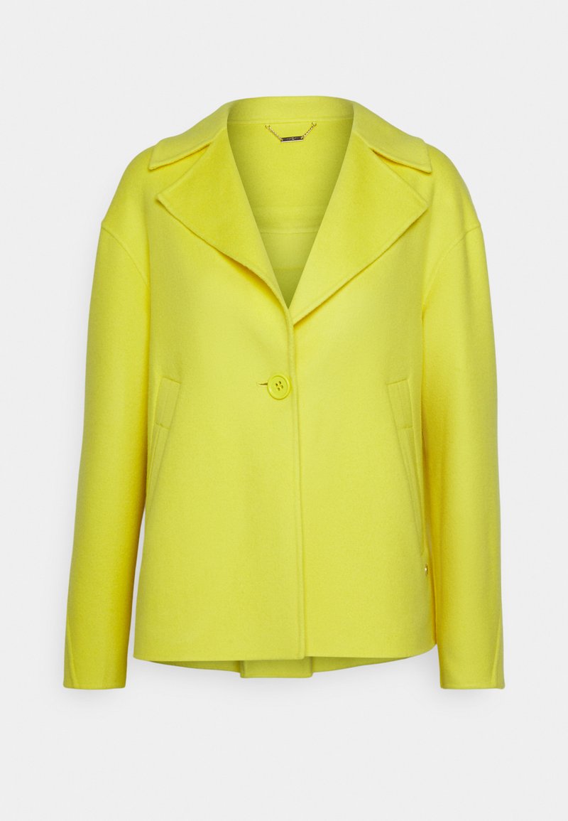 Stay stylish and sophisticated in this Casual/Elegant coat from Marc Cain. Perfect for the Autumn/Winter season, this yellow cappotto classico is the ultimate must-have for any fashion-forward woman. With its timeless design and high-quality material, this coat is sure to keep you warm and on-trend all season long.Upgrade your outerwear game with this stunning Marc Cain coat.
