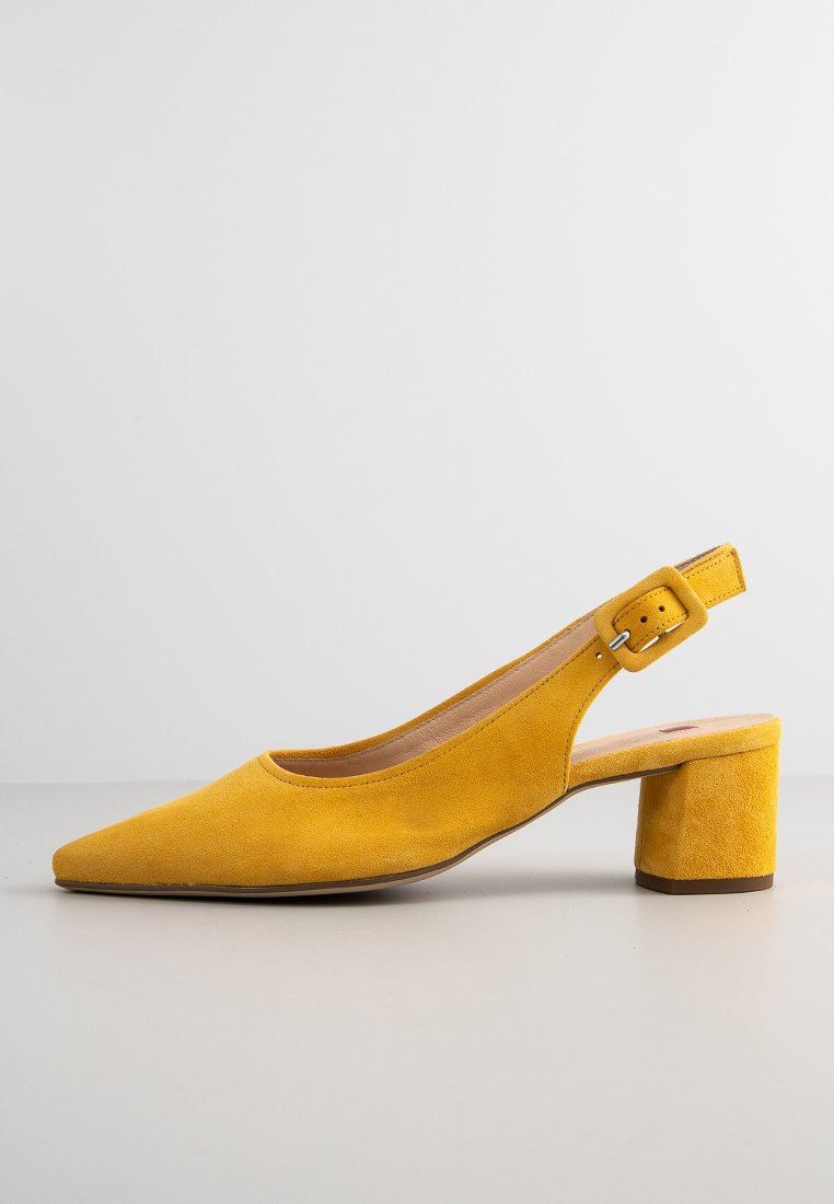 Elevate your spring/summer wardrobe with these elegant yellow pumps from Högl. Perfect for transitioning from day to night, these casual yet sophisticated shoes add a pop of color to any outfit. The sleek design and comfortable fit make them a versatile choice for any occasion. Step out in style with these Högl decolleté pumps.