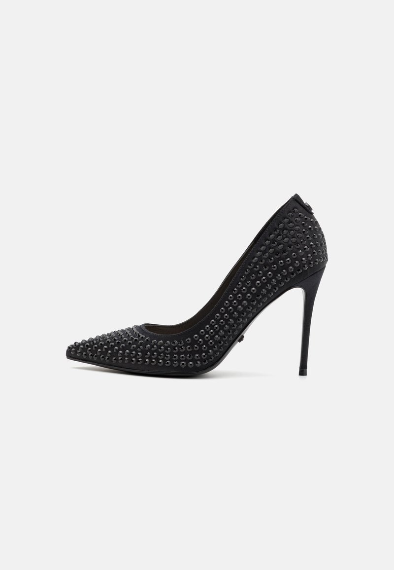 Introducing the Guess Women's Casual/Elegant Black Decolleté, perfect for the Spring/Summer season. This versatile shoe effortlessly combines style and comfort, making it a must-have for any fashion-forward woman. Featuring a sleek design and classic color, these Decolleté are ideal for both casual and formal occasions. Elevate your wardrobe with these chic and timeless Guess shoes.