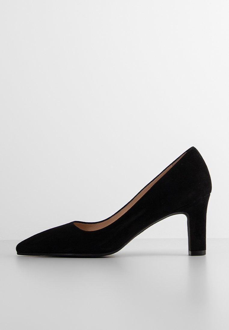 Elevate your Spring/Summer wardrobe with these Stuart Weitzman black decolleté heels that effortlessly blend casual and elegant style. Perfect for any occasion, these versatile shoes are a must-have for the modern woman. Crafted with high-quality materials, they offer both comfort and sophistication. Step out in style with these timeless classics.