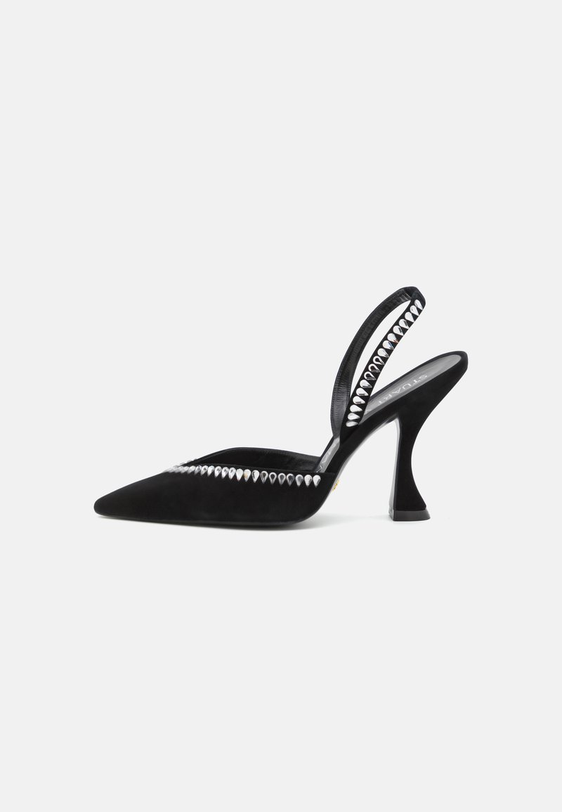 Elevate your Spring/Summer wardrobe with these Stuart Weitzman black decolleté heels that effortlessly blend casual and elegant style. Perfect for any occasion, these versatile shoes are a must-have for the modern woman. Crafted with high-quality materials, they offer both comfort and sophistication. Step out in style with these timeless classics.
