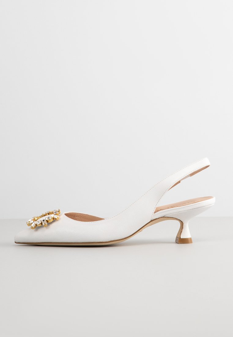 Add a touch of sophistication to your spring/summer wardrobe with these Stuart Weitzman Decolleté shoes in a crisp white hue. Perfect for transitioning seamlessly from day to night, this casual yet elegant design is a must-have for any stylish woman. Whether paired with jeans or a sundress, these versatile shoes are sure to elevate any outfit. Embrace comfort and style with these chic and timeless Decolleté shoes from Stuart Weitzman.