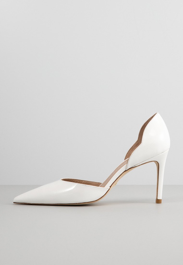 Add a touch of sophistication to your spring/summer wardrobe with these Stuart Weitzman Decolleté shoes in a crisp white hue. Perfect for transitioning seamlessly from day to night, this casual yet elegant design is a must-have for any stylish woman. Whether paired with jeans or a sundress, these versatile shoes are sure to elevate any outfit. Embrace comfort and style with these chic and timeless Decolleté shoes from Stuart Weitzman.