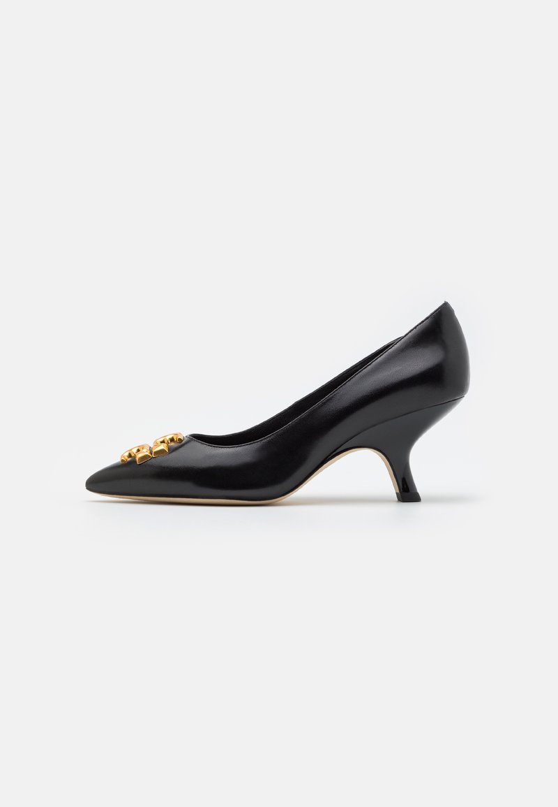 Step into summer with these versatile black flats from Tory Burch. The perfect fusion of casual and elegant style, these decolletés are a must-have for any woman's wardrobe. Pair them with jeans for a relaxed look or a sundress for a touch of sophistication. Elevate your outfit effortlessly with these timeless shoes.