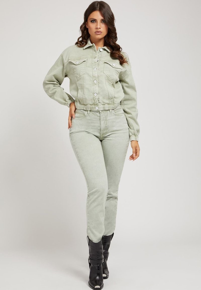 Stay stylish and warm this season with the Guess Casual Women's Jacket in a trendy Green hue. Perfect for the Autumn/Winter months, this denim jacket is a versatile addition to any wardrobe. Whether you're running errands or heading out with friends, this jacket is a must-have for a fashionable look. Upgrade your outerwear with this chic Guess denim jacket.