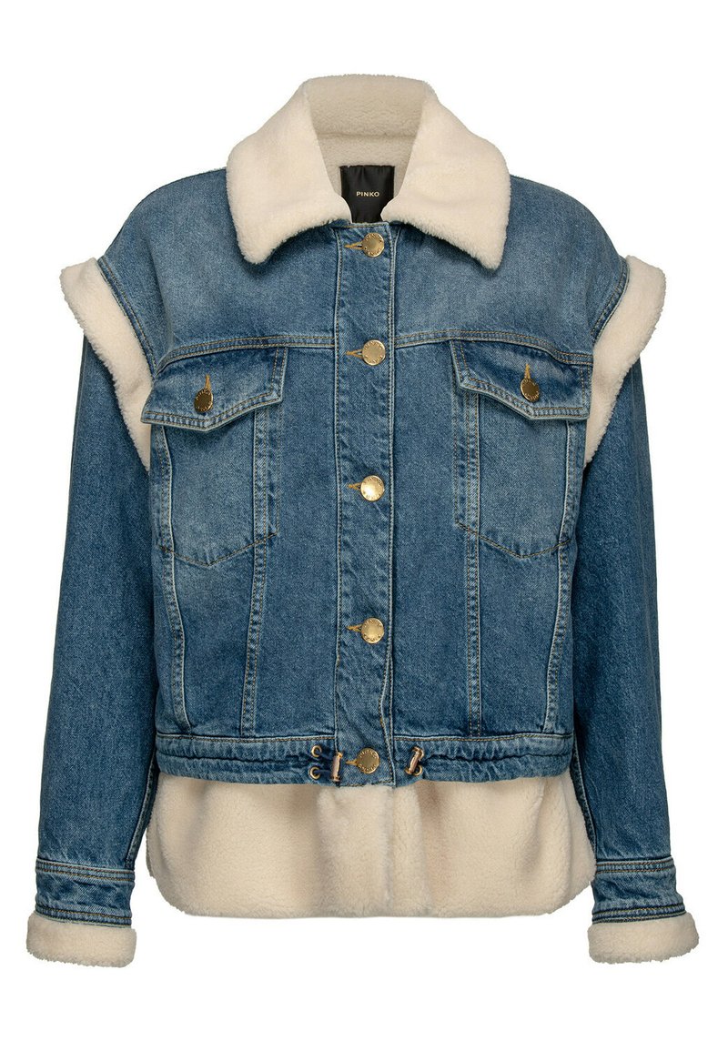 Stay trendy and warm this Autumn/Winter season with this Casual Blue Jacket for Women from the brand Pinko. Made from high-quality denim fabric, this stylish Giacca di Jeans features a modern design and comfortable fit. Perfect for layering over your favorite outfits, this versatile jacket is a must-have for any fashion-forward woman. Stay chic and cozy in this fashionable piece from Pinko.