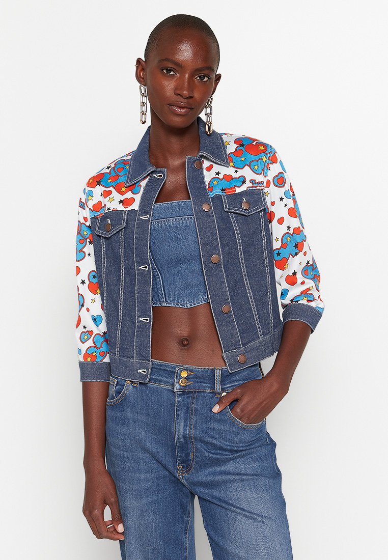 Stay cozy and stylish this Autumn/Winter season with the Love Moschino Casual Jacket for Women. This multi-colored denim jacket is perfect for adding a pop of color to your outfit. Featuring a relaxed fit, this jacket is ideal for everyday wear. Elevate your look with this chic and trendy piece.
