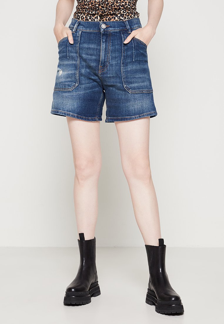 Stay comfortable and stylish in these Casual Women's Blue Denim Shorts from the brand Pinko. Perfect for the Autumn/Winter season, these shorts are versatile and on-trend. Pair them with a cozy sweater and ankle boots for a laid-back yet chic look. Upgrade your wardrobe with these must-have denim shorts.