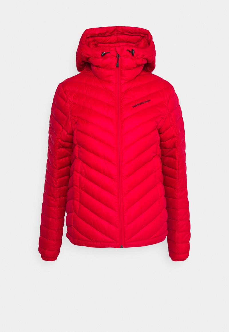 Stay warm and stylish this Autumn/Winter season with the Peak Performance red jacket for women. Made for casual days, this piumino is perfect for adding a pop of color to your wardrobe. With its cozy design and vibrant red hue, this jacket is a must-have for chilly days ahead. Stay comfortable and on-trend with this essential outerwear piece.