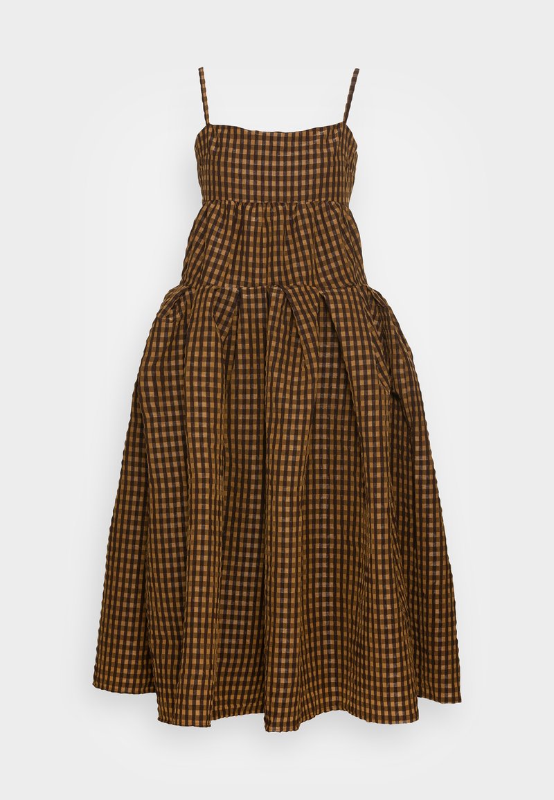 Stay effortlessly chic in this Casual/Elegant brown dress from Rejina Pyo. Perfect for the Spring/Summer season, the versatile design combines relaxed style with a touch of sophistication. Ideal for any occasion, this dress is a must-have for the modern woman looking for stylish comfort. Add a pair of sandals or sneakers to complete your look.