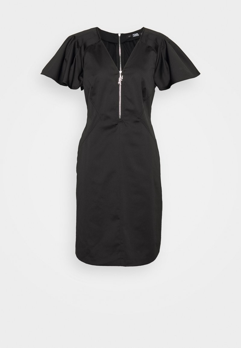 Introducing the perfect dress for the spring/summer season from Karl Lagerfeld. This Casual/Elegant black dress is a must-have for any woman's wardrobe. Its versatile style allows it to be dressed up or down for any occasion. Stay chic and trendy in this Karl Lagerfeld dress.