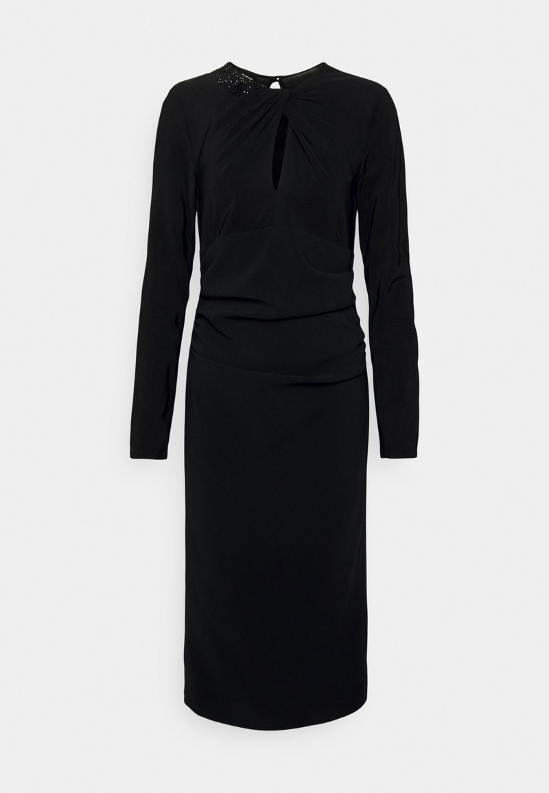 The Casual/Elegant Black dress from Pinko is a perfect choice for the Spring/Summer season. Made for women who appreciate both comfort and style, this versatile piece can be dressed up or down for any occasion. With its classic black color, this dress is a timeless addition to any wardrobe. Stay chic and effortless in this Pinko dress.