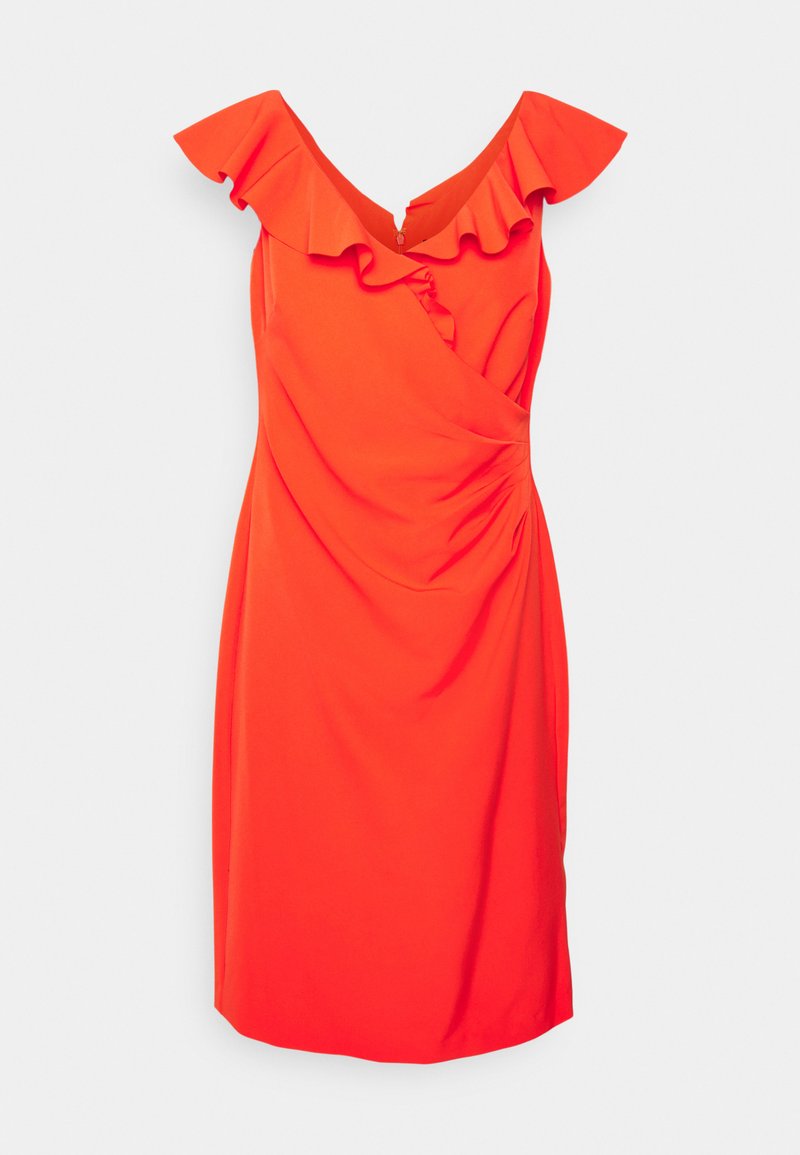 Stay chic and sophisticated this Spring/Summer season with this Lauren Ralph Lauren casual yet elegant dress in a vibrant orange hue. Perfect for any occasion, this dress is versatile and stylish, making it a must-have in every woman's wardrobe. Add a pop of color to your look and turn heads wherever you go in this stunning piece. Elevate your fashion game with this Lauren Ralph Lauren orange dress.