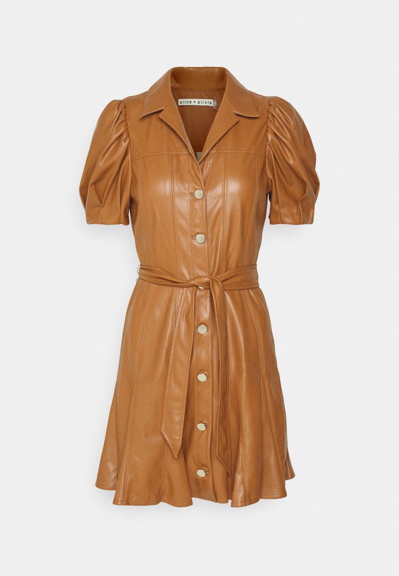 Stay chic and sophisticated with this casual yet elegant yellow dress from alice + olivia. Perfect for the Spring/Summer season, this versatile piece can be dressed up or down for any occasion. With its flattering silhouette and vibrant color, this dress is a must-have for the modern woman who values style and comfort. Add a pop of color to your wardrobe with this stunning alice + olivia dress.