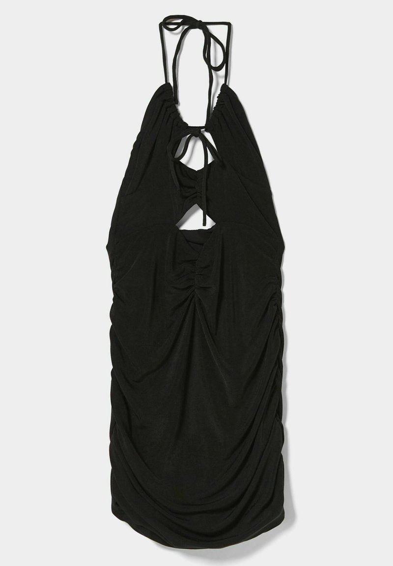 Stay effortlessly chic this spring/summer season with this casual yet elegant black dress from Bershka. Perfect for any occasion, this versatile piece is a must-have in any woman's wardrobe. With its stylish design and comfortable fit, you'll be turning heads wherever you go. Upgrade your look with this timeless classic from Bershka.