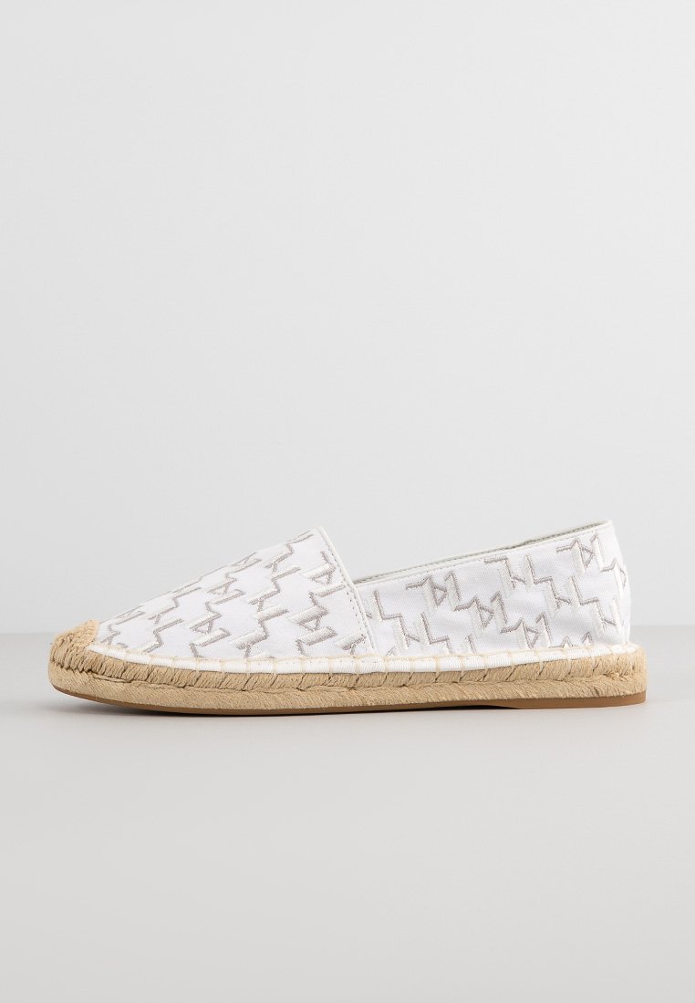 Step into the warmer months in style with these Casual/Elegant white espadrilles from the iconic brand Karl Lagerfeld. Perfect for the Spring/Summer season, these shoes effortlessly combine comfort and sophistication. Whether you're strolling through the city or relaxing by the beach, these espadrilles are a must-have for any woman looking to elevate her everyday look. Make a chic statement with these versatile and timeless shoes.
