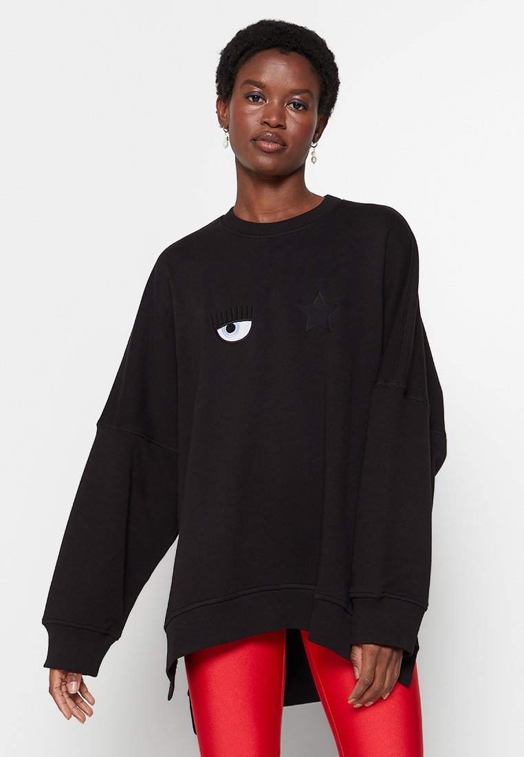 Stay cozy and chic this Autumn/Winter season with the CHIARA FERRAGNI Casual Hoodie for Women. This stylish black hoodie is perfect for adding an extra layer of warmth to your outfit. The felpa features a relaxed fit and is ideal for those laid-back days. Elevate your wardrobe with this versatile hoodie.